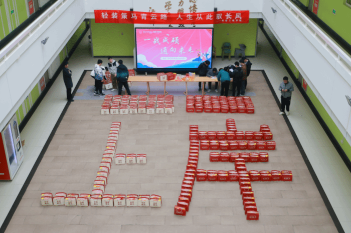 活动现场精心准备了380份考研大礼包,礼包内既有学子们考试所必须的文具,又有充满寓意的礼物。其中,定胜糕蕴含着必胜的信念,鼓励考生们坚定信心,战胜一切困难,一战成“硕”;脐橙寓意“脐”开得胜,心想事“橙”;金榜题名袜子寓意脚踏实地,迈向成功之路;乐事薯片寓意从容应对,天天“乐事”;钥匙扣上的好“柿”发生、一举夺“葵”等字样也寄托着公司对考研学子的祝愿……一份份礼包排成大大的“上岸”两字,寄托着公司对考研学子们旗开得胜,成功“上岸”的深切祝福。
