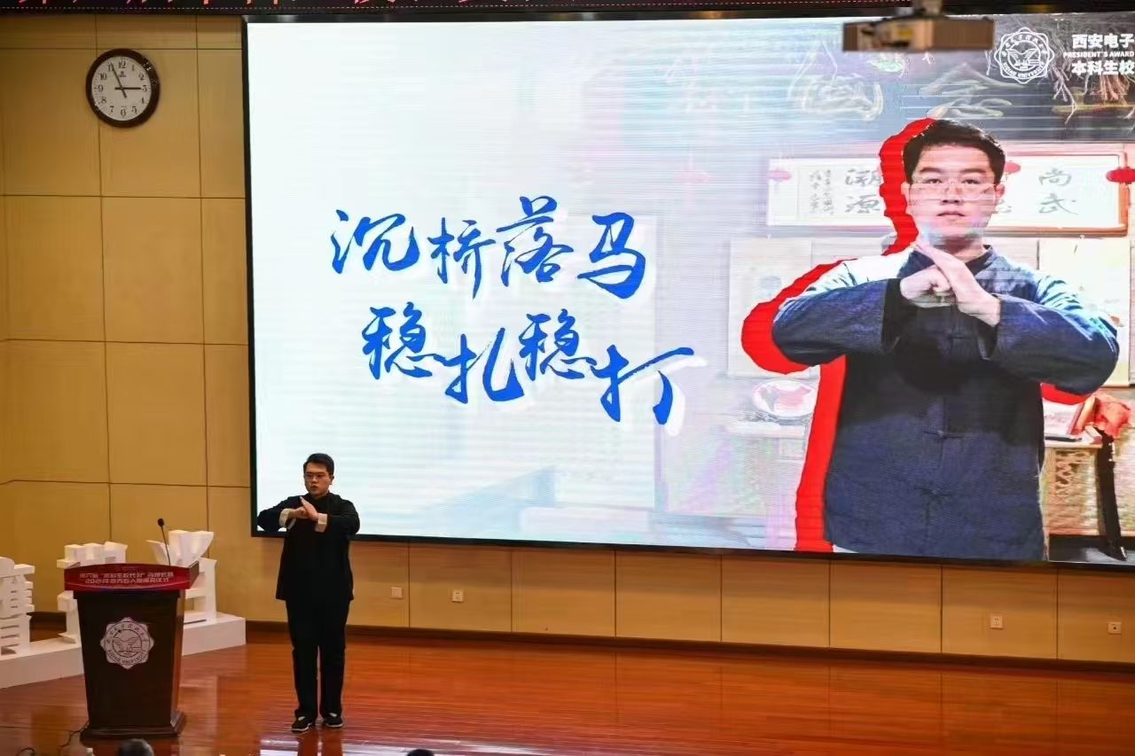 沉桥落马,稳扎稳打。李巴特以咏春拳作为开场,展现了一名习武者的风范。作为一名少数民族预科生,面对重重困难,他身为学习委员在预科班中自发创办预科助学小组,助力民族团结、共同进步。他以星火杯和数模比赛为起点,最终获全国电子设计竞赛本科组全国一等奖。他以员工一作的身份发表SCI论文一篇、申请专利一项。他带领集体荣获五四红旗团支部、校级先进党支部等荣誉,努力做一名永远向阳的石榴籽。