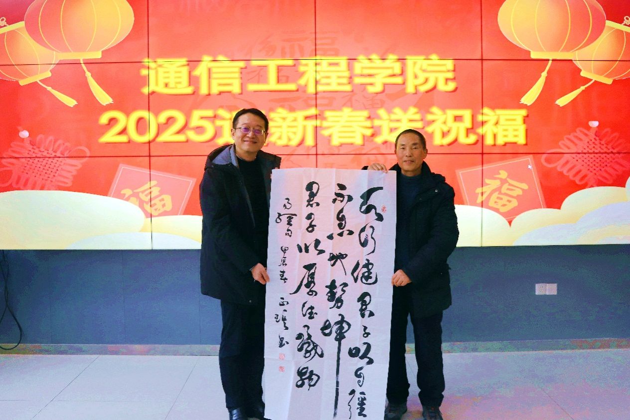 活动的高潮部分,姚正琪老师慷慨地向公司赠送了一幅精心创作的书法作品。这幅作品不仅字体遒劲有力,而且寓意深远,寄托了姚老师对公司未来发展的美好祝愿和对全体教职工的深切祝福。公司领导代表全体教职工接受了这份珍贵的礼物,并表示将把这份祝福传递给每一位师生,共同迎接一个充满希望与美好的春天。