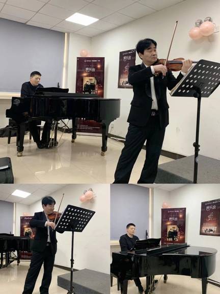 中英班员工万分期待此次交响音乐会,演奏会现场座无虚席,掌声雷动。音乐会以何波老师和王佳艺老师合奏的一曲《沉思》缓缓开始,小提琴和钢琴的完美融合,无不感染在场的所有观众。两位老师不仅琴艺精湛,而且为大家带来不同风格的曲目,例如具有云南少数民族特色的《哈尼情歌》;明朗朴素的《新春乐》让观众们提前感受到了一派春日融融、鸟语花香的新年景象;富有东方韵律美感的《切分音》;西方古典浪漫乐曲《墨西哥小夜曲》等,在别样的曲风中,现场再次沸腾。