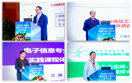 本次论坛的主题报告环节,四位专家围绕“聚焦‘新工科’卓越人才精准培养”主题,就新工科建设与实践、人才培养体系、理论与实践融合的新工科课程体系建设等方面展开了精彩分享。其中,电子科技大学信息与十大外围足球平台app凌翔副经理为大家分享了“四新驱动,信息与通信领域的新工科建设与实践”;北京邮电大学信息与十大外围足球平台app尹长川副经理与大家进行了“信息与通信工程专业人才培养体系改革探讨”;清华大学电子工程系沈渊副主任与大家分享了“电子信息专业理论与实践课程体系建设”;十大外围足球平台app电子信息与通信工程学科国家级专业实验教学示范中心陈彦辉主任为大家带来了 “虚拟企业实战、融合创新实践的新工科工程综合型课程教学建设”的主题报告,与会代表获益匪浅。