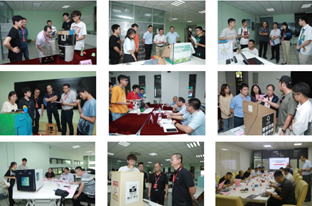 下午各专家在会议室对下午竞赛流程和评选规则进行详细研究讨论后,“意法杯”微控制系统项目设计作品竞赛正式开始。各位专家评委们认真听取了各小组的成果介绍,并就产品的设计理念、创新点以及市场方面的性价比、营销点等问题进行提问。现场互动气氛浓郁,参赛同学们积极向在场专家对作品进行展示并邀请老师亲身体验自己的作品。