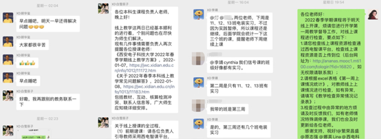 按照公司疫情防控要求及线上教学工作部署,公司领导第一时间做出反应,制定《2022春季学期本科在线教学工作方案》,对线上教学运行、教学质量保障、完善线上课程资源等诸多环节部署。对春季学期任课教师进行仔细排查,摸清情况,确保任课教师能够按时授课。建立“【通院2022春】本科生课程负责人群”,“【通院2022春】本科课程任课教师群”,及时发布公司相关通知要求以及线上教学操作指南,指导教师充分利用智课平台进行线上课程资源建课,并组织教师参加线上教学培训,确保高质量完成教学任务。对全院员工发布线上教学的各项要求及操作指南,提前熟悉直播平台,联络辅导员解决员工线上上课存在各种问题,共同做好教学保障和关怀帮扶。在去年年底,社区完全封闭前,公司已预先将提前准备好的手写板发放至需要的老师手中,最大限度的保障了线上教学的设备需求。针对因疫情原因无法领取教材的问题,公司联系教材供应中心,为师生提供前三章电子教材,并争取纸质教材供应。