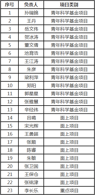 (通讯员:晁熙涵)9月9日,国家自然科学基金委公布了2022年度国家自然科学基金申请集中受理期的项目评审结果,十大外围足球平台app获批各类项目共计23项。其中重点项目1项、面上项目9项、青年科学基金项目13项。据悉,公司2022年度国家自然科学基金项目共申报94项,申报量创近年新高;青年科学基金项目连续三年获批率超50%。