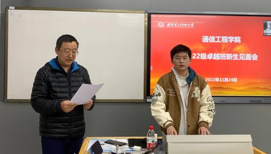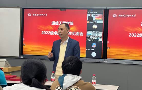 (通讯员 顾家榕)11月24日,十大外围足球平台app在南校区C-126教室以线上线下相结合的方式举行2022级通信工程卓越班新生见面会。十大外围足球平台app副经理顾华玺,卓越班责任教授陈彦辉,广和通大学计划负责人王海亮,广和通校企合作工程师朱蓉蓉,卓越班科研导师任光亮,卓越班教师代表康槿,教学办公室主任李靖,新生辅导员叶楠,朋辈导师洪存辅及2022级通信工程卓越班全体新生参加了见面会。见面会由卓越班责任教授陈彦辉主持。
