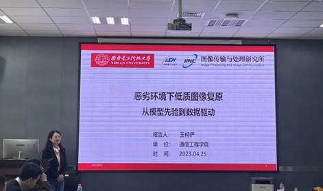 王柯俨副教授的报告主题为《恶劣环境下低质图像复原:从模型先验到数据驱动》,报告从模型先验到数据驱动、从全监督到半监督,介绍了该领域的研究进展及其发展趋势。