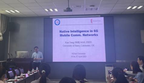 学术报告分享环节,杨鲲教授简要介绍了6G移动通信系统,然后从不同的角度探讨人工智能(AI),尤其是机器学习(ML)如何为6G网络提供内生智能的支撑,主要包含数据驱动的通信系统、语义通信、数字孪生网络、通信-感知一体化、无线联邦学习等热点话题,报告内容深入浅出,生动形象,与会师生纷纷表示深受启发。