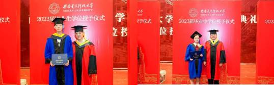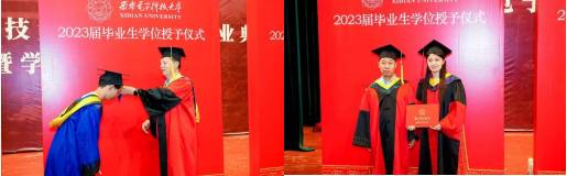 在授位环节,导师代表李云松教授等上台,为毕业生一一拨穗并合影留念,全体到场师生和家长共同见证了同学们这一庄重、难忘的人生重要时刻。
