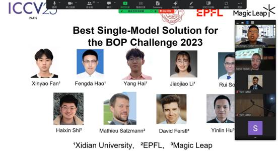 (通讯员 郝丰达)近日,两年一届的国际计算机视觉大会(IEEE International Conference on Computer Vision,简称ICCV)在法国巴黎举行。由十大外围足球平台app,洛桑联邦理工公司(EPFL),和Magic Leap组成的联合队伍获得了此次会议举办的BOP Challenge(Benchmark for 6D Object Pose Estimation)中的单模型赛道冠军,同时获邀在8th International Workshop on Recovering 6D Object Pose(R6D)上汇报。