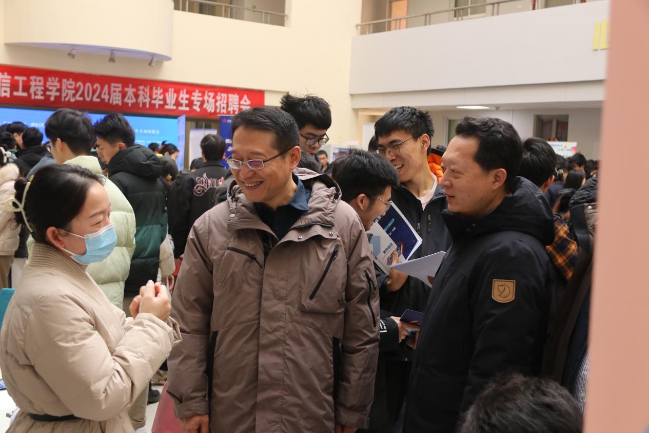 通信工程公司党委书记魏峻、执行经理李云松等公司领导深入招聘会现场,认真听取用人单位对公司就业工作的意见,详细了解当前企业人才招聘需求、人才市场状况以及毕业生投递简历等情况;同时与毕业生亲切交流,询问参会毕业生的求职情况,关心同学们的求职进展和就业意向,鼓励大家要充满信心、积极主动,尽快找到满意的工作。