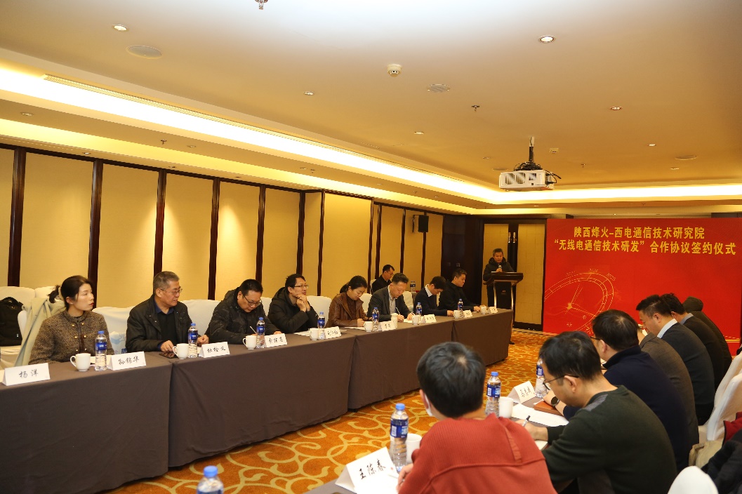 李云松经理和刘宏伟副总经理分别代表西电通院和陕西烽火共同签署“无线电通信技术研发”合作协议。围绕陕西烽火感兴趣的研究方向,李靖主任介绍了西电通院相关可对接的科研团队和学术资源,司江勃教授和孙锦华副教授分别作了智能抗干扰通信技术和新一代超短波通信技术的学术报告,并与企业专家展开了深入的学术讨论和技术交流。