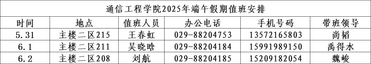 2025年端午假期值班安排