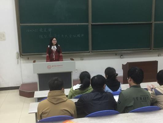 在党的十九次全国代表大会闭幕之际,为了让本支部员工党员了解和学习十九大的主要内容及精神,并在支部和班级中发挥模范带头作用,全面加强学风建设,支部书记付江坤同志就本次会议主题和目的进行了总结和分析,以便支部内更好地展开学习讨论。
