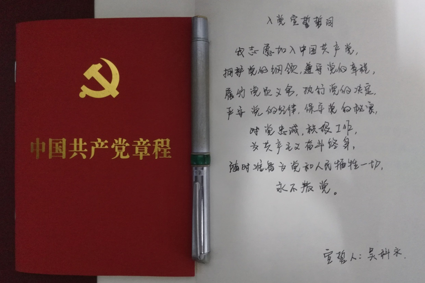 能够成为研究生阶段的党支部书记,这和吴科永本科阶段的员工工作经历密不可分。他说,最初申请入党是源于发自内心的向往,通过一路走来的学习和实践,他逐渐体会到,入党是一种信仰,是一种价值观的认同,更是对党旗下誓言的孜孜践行。