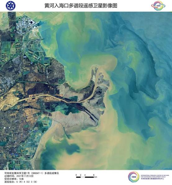 SDGSAT-1多谱段成像仪设计有7个波段,空间分辨率为10米。多谱段数据具有大幅宽、高信噪比等特点,其波段设置适用于各种浑浊水体的水色指数、透明度和悬浮物等的监测,可服务SDG 6(清洁饮水和卫生设施)和SDG 14(水下生物)中的水质监测、近海生态环境、滨海养殖和水生植物分布等相关指标的监测和评估。另外,多谱段数据还可用于开展冰川面积与变化、积雪消融状态、植被覆盖等信息提取及变化分析,可为SDG 13(气候行动)和SDG 15(陆地生物)等相关指标监测和评估提供服务。